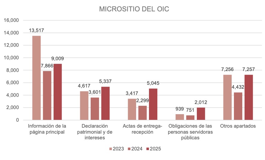 Durante el periodo que se reporta, el Micrositio del OIC acumuló un total de 28,660 visitas en los temas que se presentan a continuación: